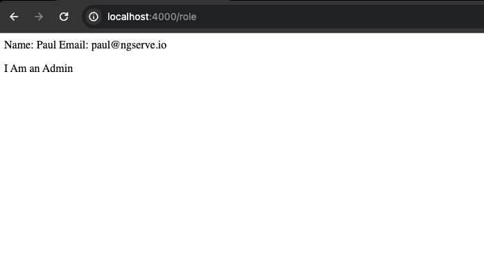 node ./dist/apps/platform-provider-pattern-app/server/server.mjsA login page shows initially. Click the login button as this will generate a sample token with claims and add the token to session storage. The page shows the claims in the page including the I am an Admin text per the role.